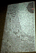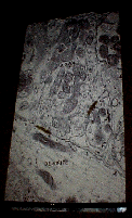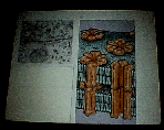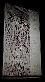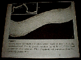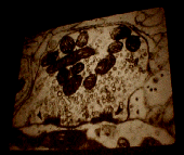 | 2) Thin section of cardiac muscle. See the intercalating disks. They myofibrils are branched. Big grey patches are the mitochondria. Nucleus in the upper left corner. | |